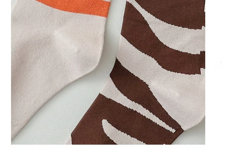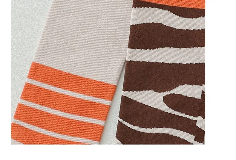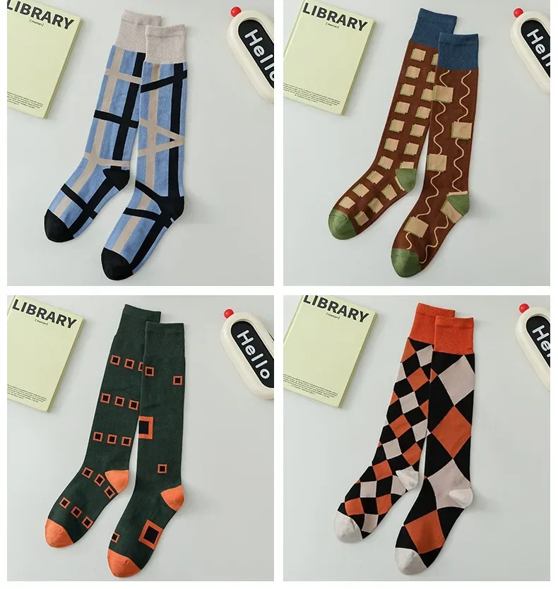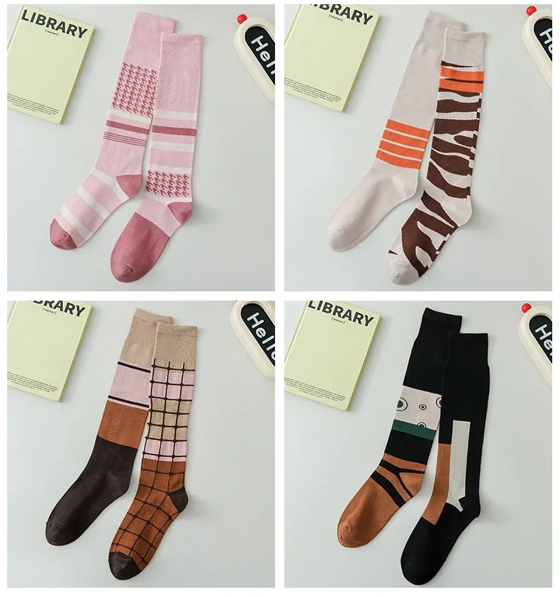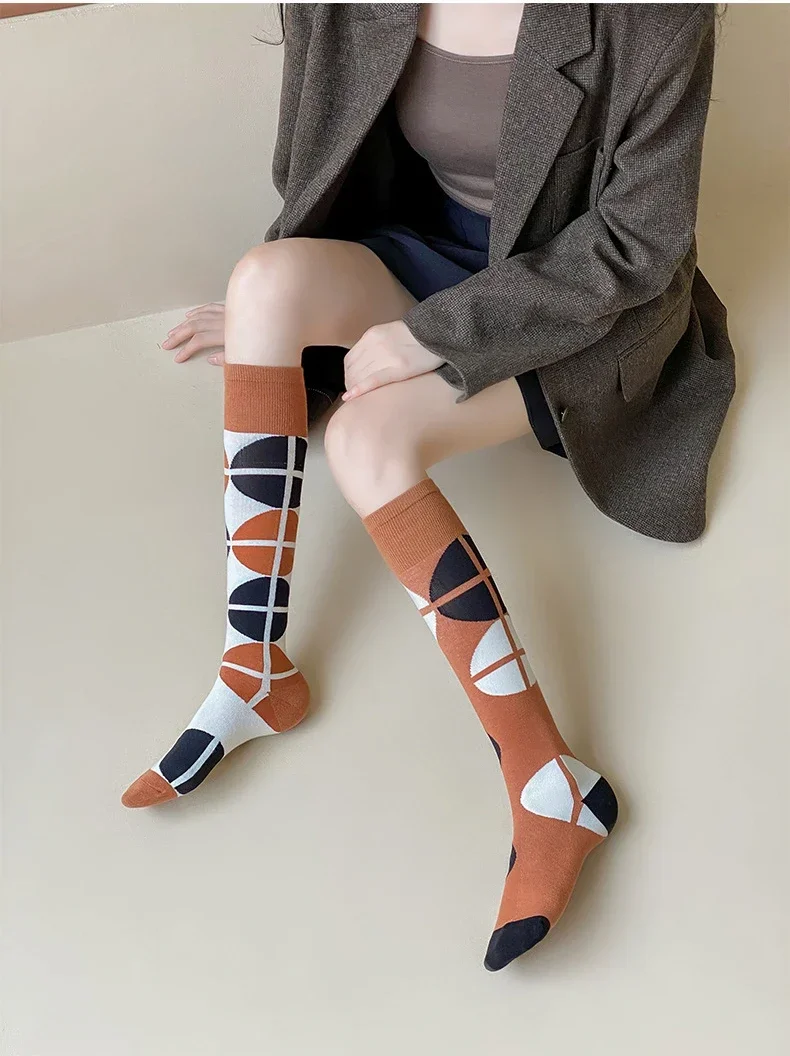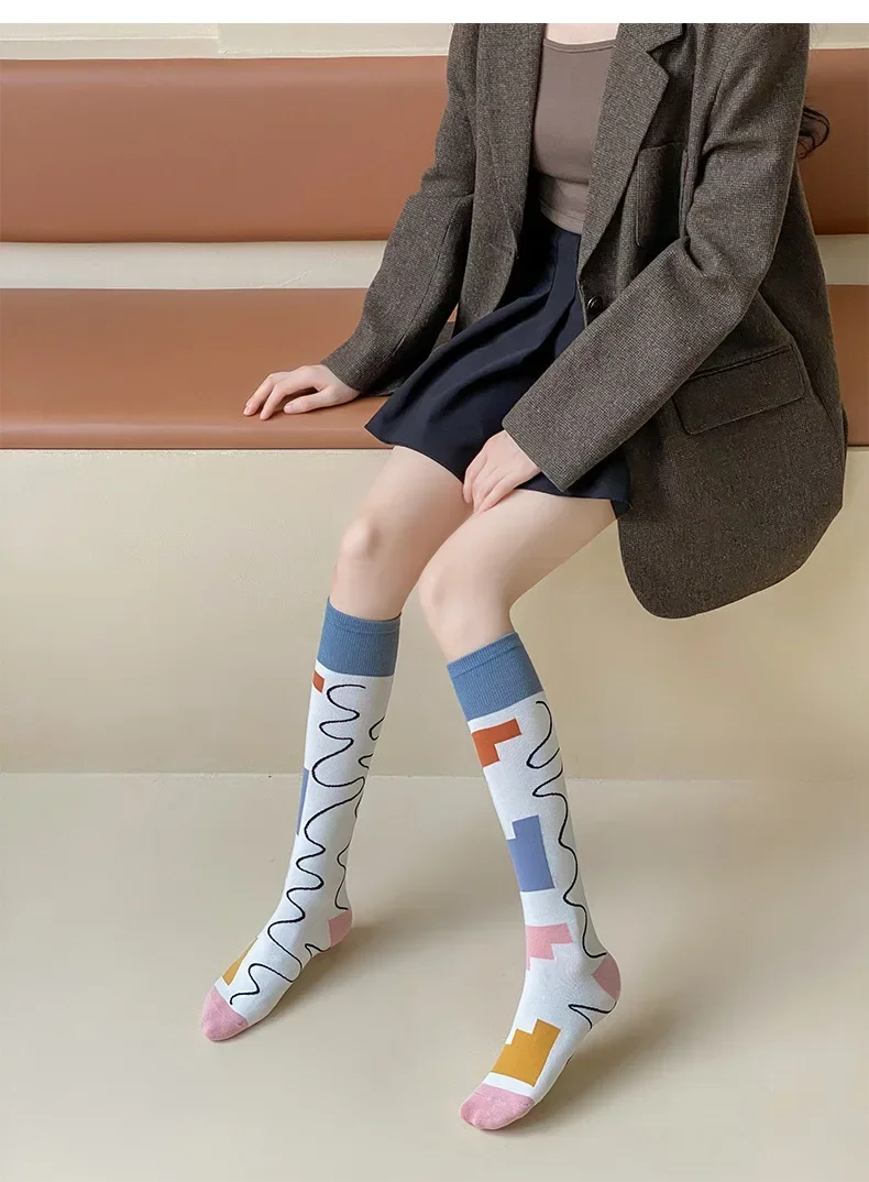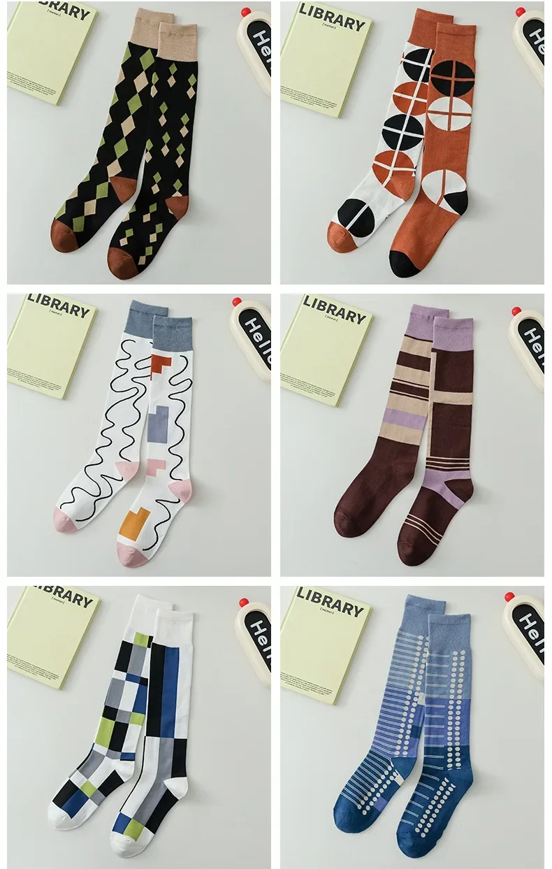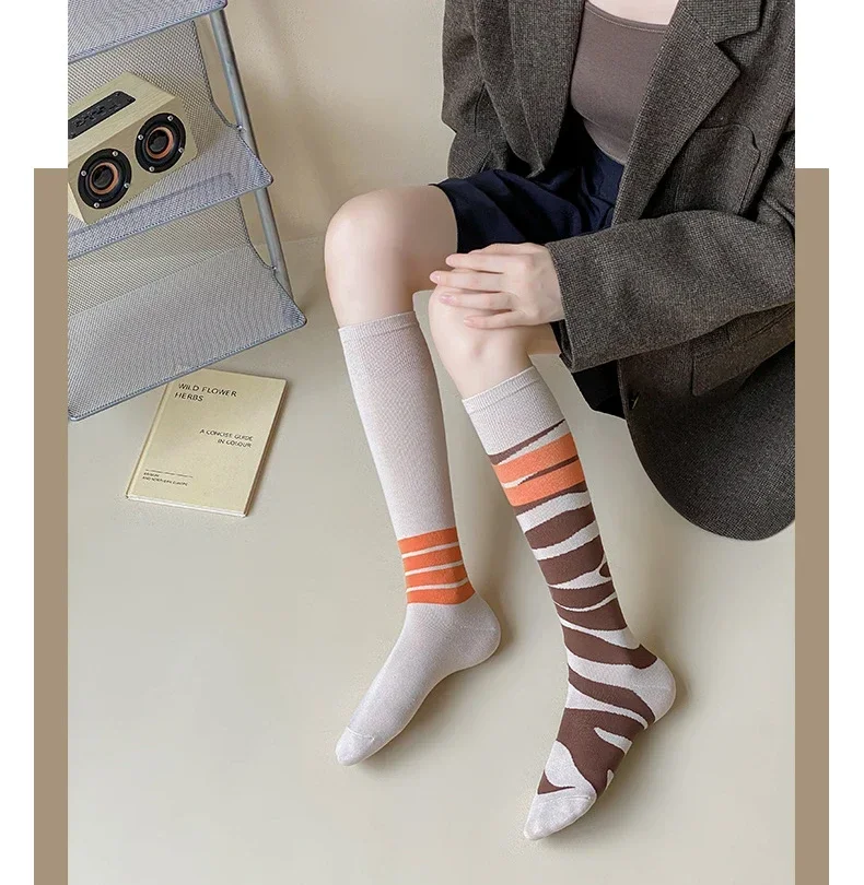 2025 Retro Color Contrast Gradient Stripes AB Knee-length Calf Socks Women Individual Fashion Cotton Sports Socking